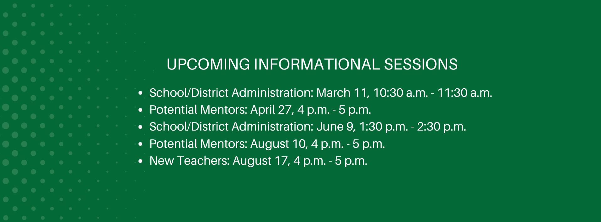 Upcoming online informational sessions: